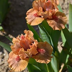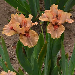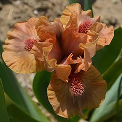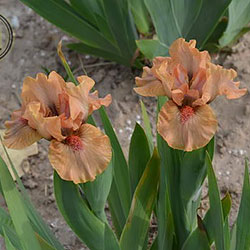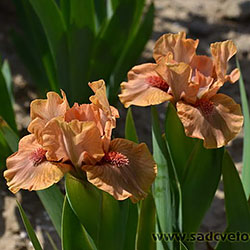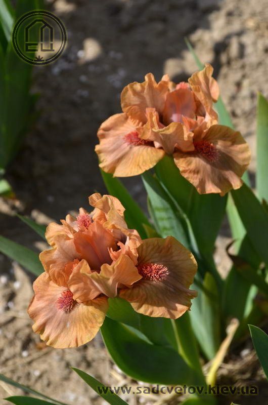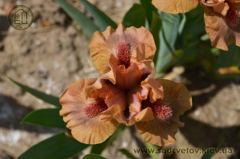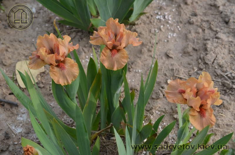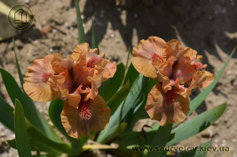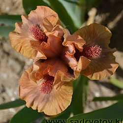 Гофрована квітка. Ст. - помірний оранжевий, серединка - помірний жовтувато-рожевий з світло-оранжевими кінчиками, ф. - колір стандартів в основі з візерунком темних гірчичних прожилок з боків борідки, лавандове сяйво під б. з кінчиками помірного оранжевого по основі помірного пурпурного.
