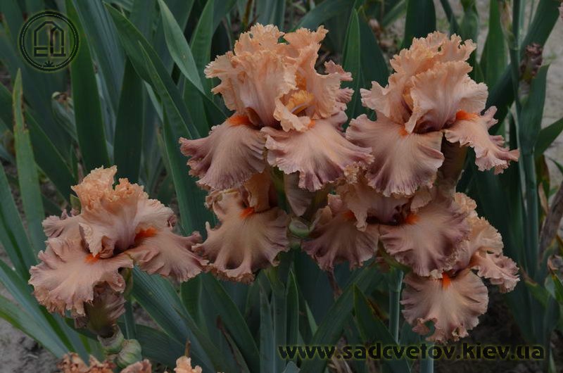 Прекрасно гофрований мереживний персиковий сильної конституції. Ст. - персикові з лавандовим рум'янцем в середніх жилках. Ф. - рожево-персикові більш насичені по краях і в плечах. Б. - яскраві лососєві.