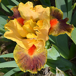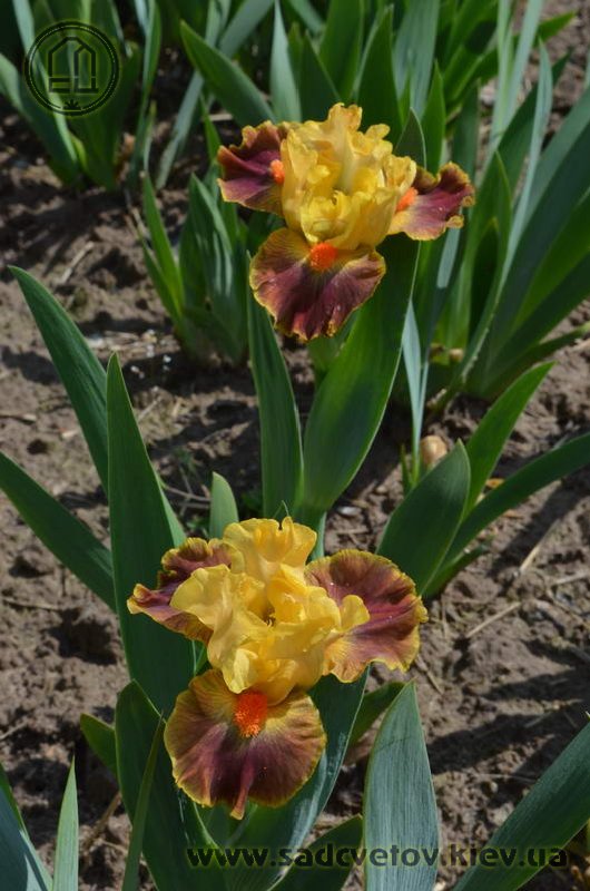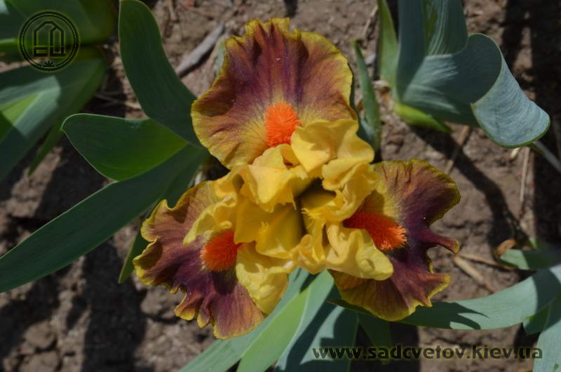 Гофрована квітка. С. - абрикосово-жовті. Серединка - зеленувато-жовта. Ф. - сливово-червоний під бородою який переходить в червоно-коричневий до гірчичних плечей з жовтим круговим висвітленням навколо бороди і тонкою каймою по краю. Б. - яскраві оранжеві.
