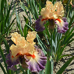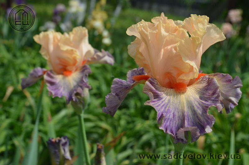 Яскрава гофрована квітка. Ст. - світлі абрикосово-рожеві. Ф. - люміната світло-абрикосових прожилок по лавандовій основі навколо дуже яскравої насиченого червоно-мандаринового кольору бороди.