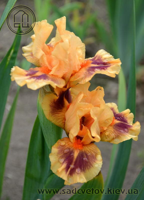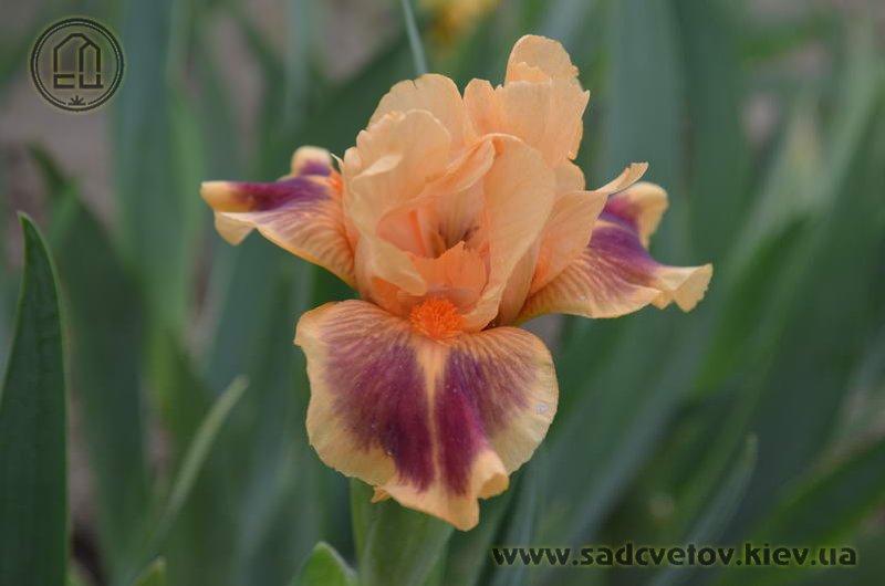 Гофрована абрикосова з оранжевими прожилками квітка, на фолах розсічена посередині малинова пляма яка створює 1/5" облямівку по краю, б. - лососєво-оранжева.