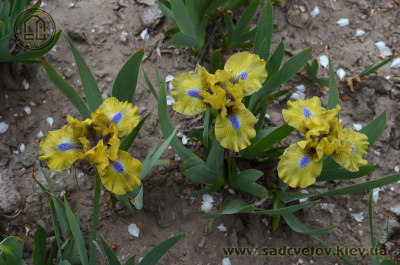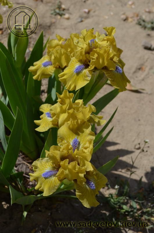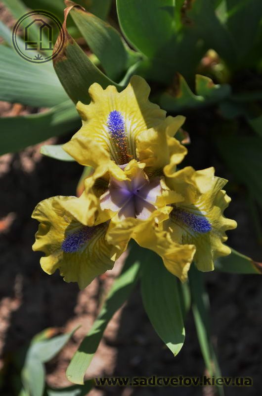 Назву отримав за яскраві волошкові б., що контрастують на світло-жовто-оливковому тлі в поєднанні з золотистим малюнком. Гофрований.