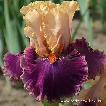 Велика гофрована квітка. Ст. - світлий абрикосовий з рожевим персиковим рум’янцем. Гілки маточки - такі як стандарти. Ф. - світлий рожево-бєжевий з широкою каймою кольору стандартів та невеличким білим візерунком прожилок з боків від бороди. Б. - приглушений насичений помаранчевий по білій основі.