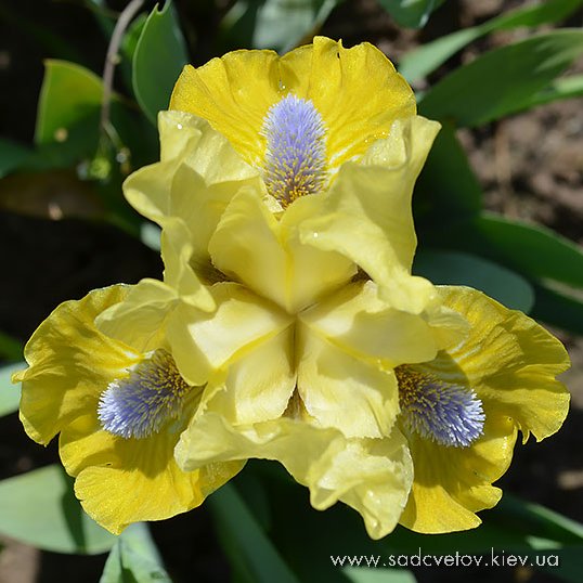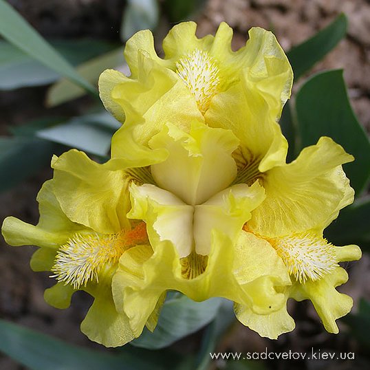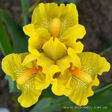 Однотонна добре гофрована квітка з круглими горизонтальними фолами. Лимонні ст., ф. - в основі колір стандартів з гірчичним візерунком прожилок окресленим 1/5" облямівкою навколо яскравої лимонної з білим на кінці б.