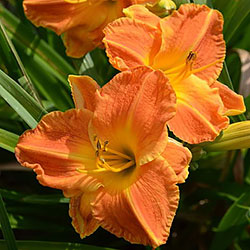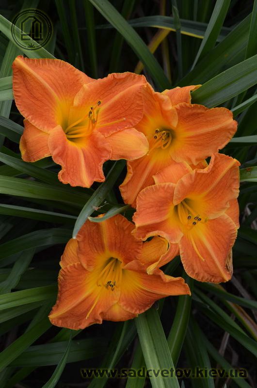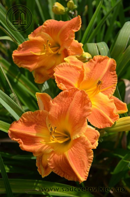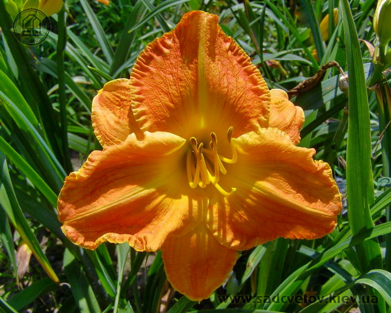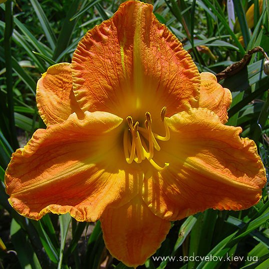 Великий, яскравий помаранчевий з жовтим горлом і такою ж гофрованою каймою.