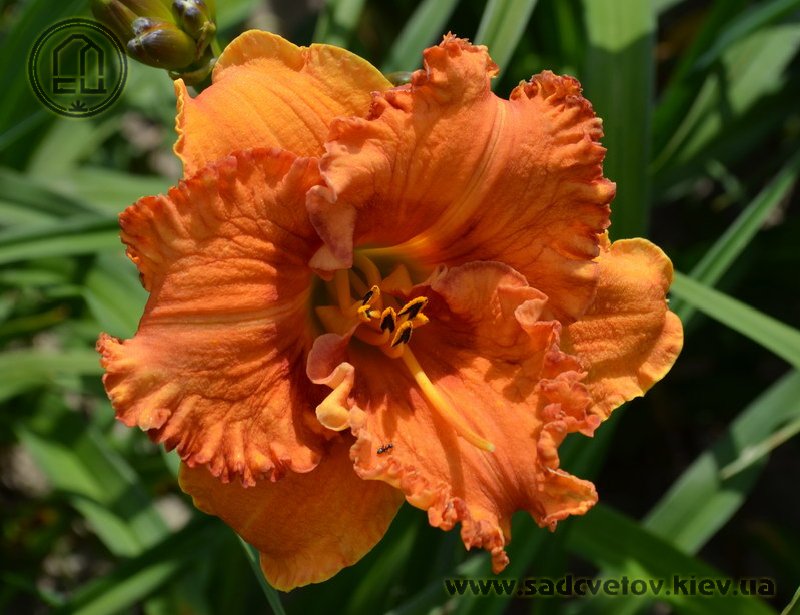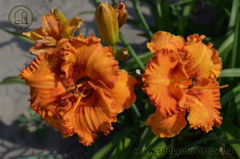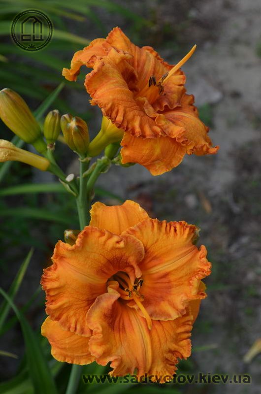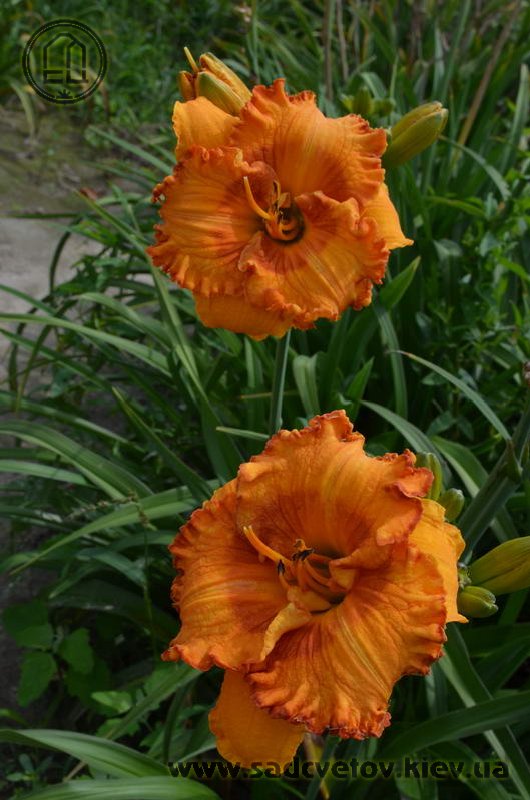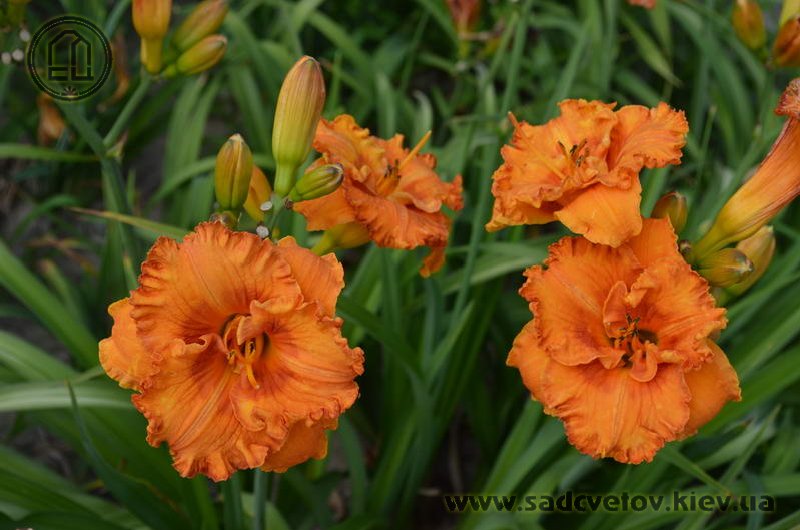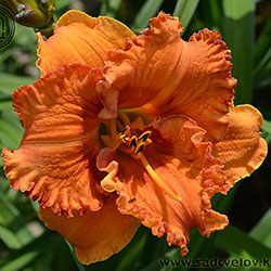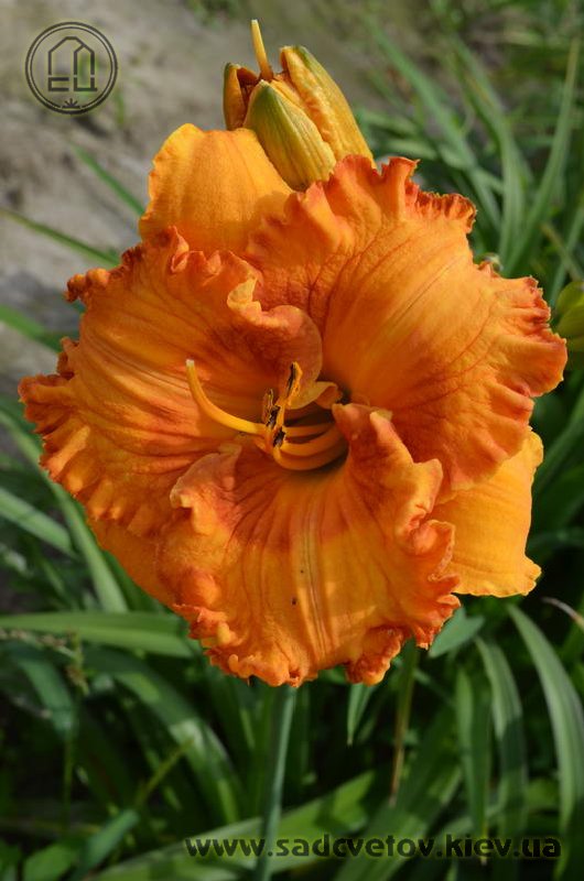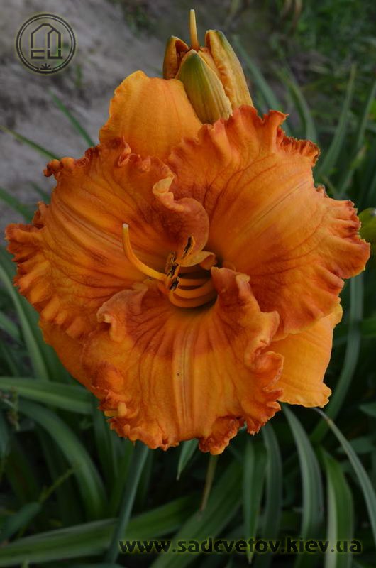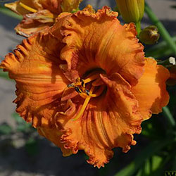 Супергофрований помаранчевий. Внутрішні частки оцвітини мандаринові з червоним оком і тонкою облямівкою по краю, зовнішні частки - апельсинові. Дуже гарячий за кольором.