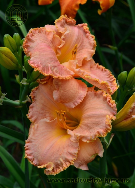 Чарівний кремово-кораловий з витончено гофрованою помаранчевою облямівкою.