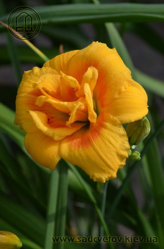 Яскравий жовто-абрикосовий з оранжевим вічком.