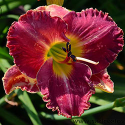 Гофрований круглий яскравий карміновий з лимонно-зеленим горлечком.