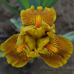 Акуратний з круглими широкими фолами. Ст. - зелено-жовті, ф. - жовто-коричневі з тонкою розмитою гірчичною облямівкою і таким же смугастим візерунком навколо бороди і в плечах. Б. - яскраві жовті, більш гарячі до горловини.