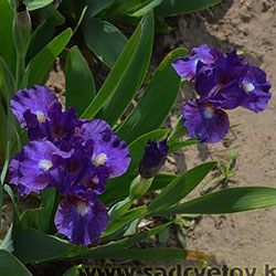 Яскраві білі з оранжевої горловиною б. на темному насиченому фіолетовому тлі. На ф. від плечей з боків від б. плями темно-пурпурного кольору, невелике висвітлення навколо б.