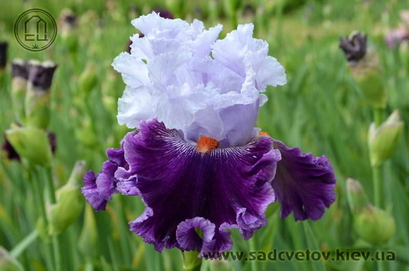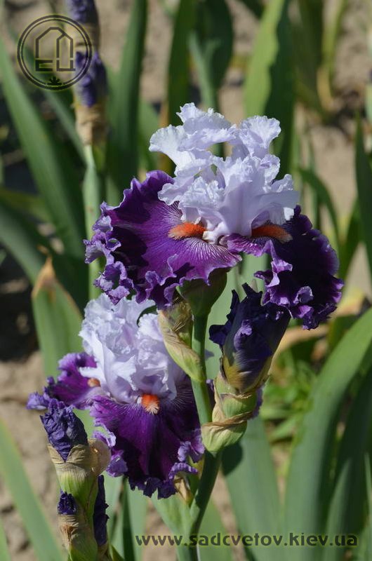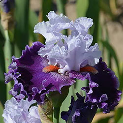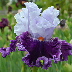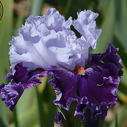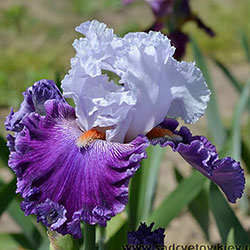 Супергофрірованний з мереживними краями. Ст. - льодово-білі з легким лавандовим рум'янцем. Ф. - темно-фіолетові з 1/8 "лавандово-фіолетовою облямівкою, візерунок білих прожилок з боків від мандаринових з білим кінчиком б.