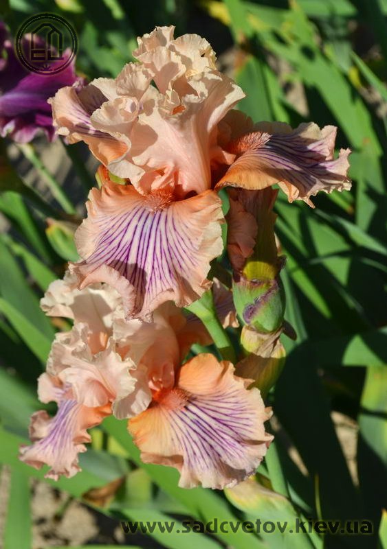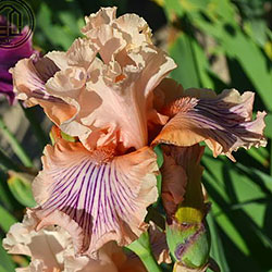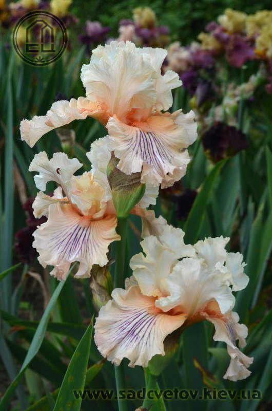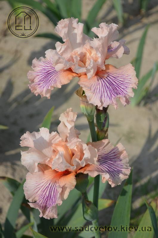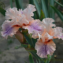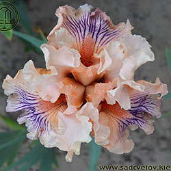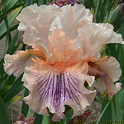 Ст. - кремово-білі всіяні блідими жовтувато-рожевими прожилками. Ф. - блідого оранжево-жовтого кольору з спадаючим візерунком яскравих пурпурних прожилок що на 1/3” не доступать до краю і світло-оранжевими плечима. Б. - оранжеві кінчики по кремово-білій основі.