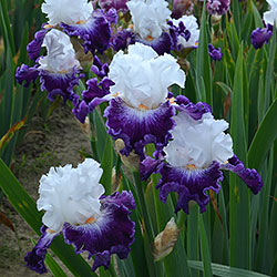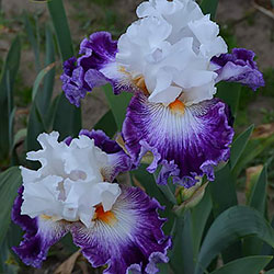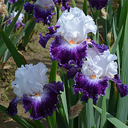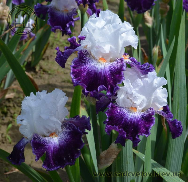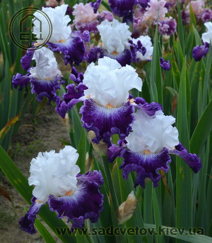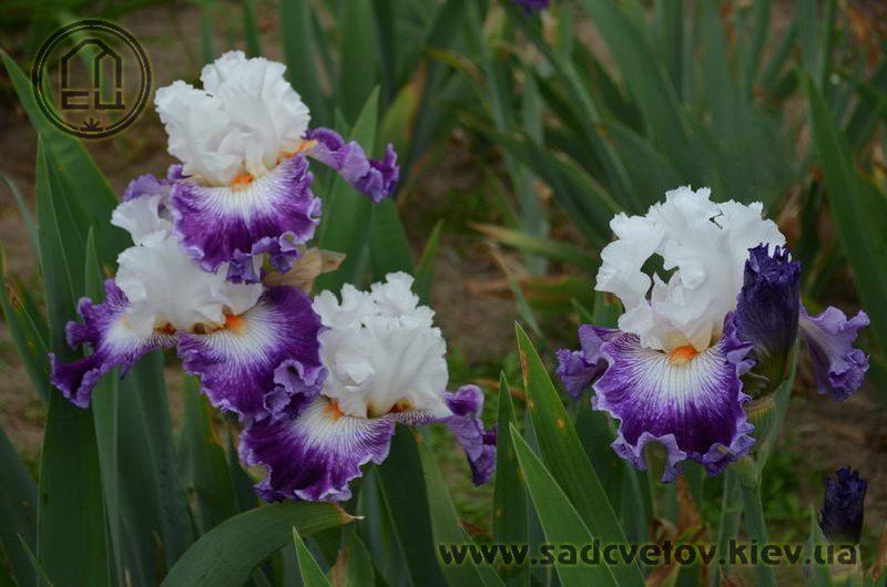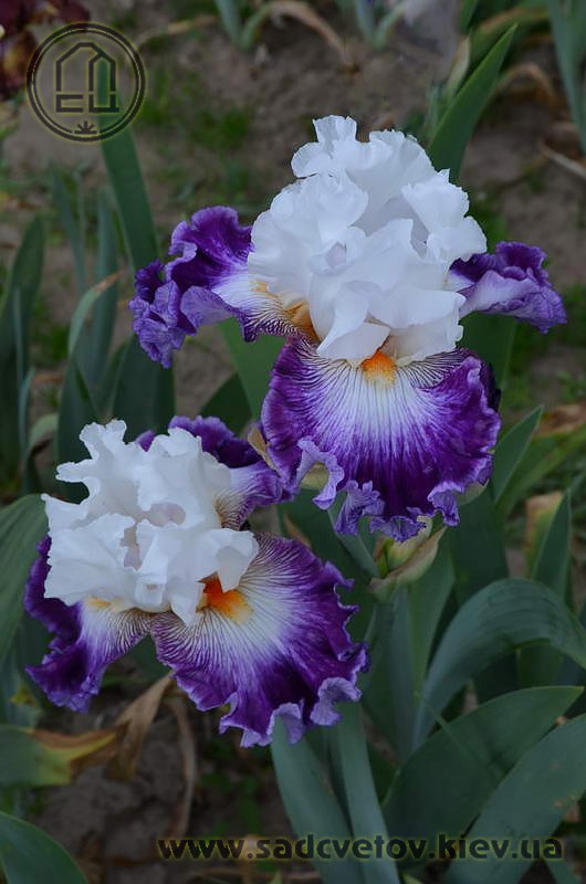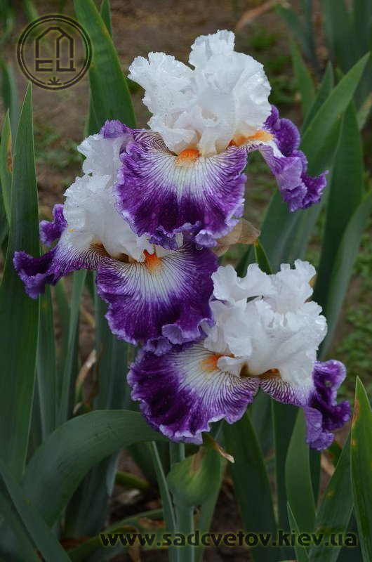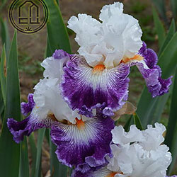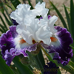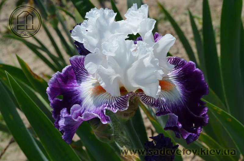 Добре гофрована квітка. Ст. білі, ф. - яскравий пурпурний з активною люмінатою чистих білих прожилок навколо яскравої мандариновою б. по білій основі.