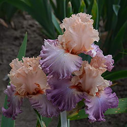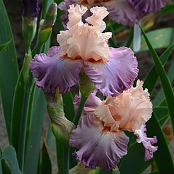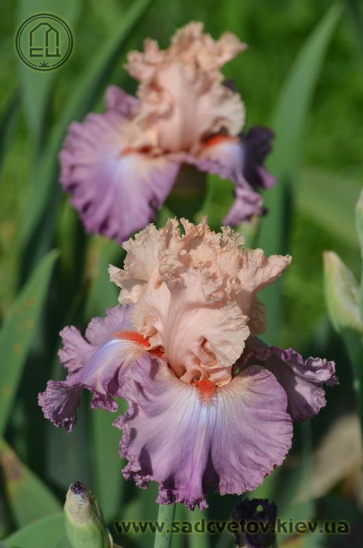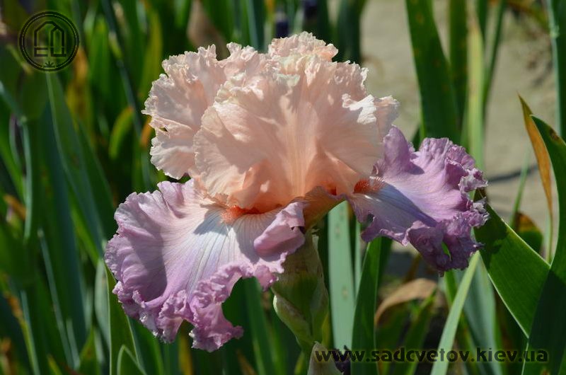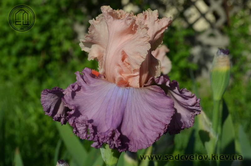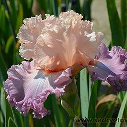 Мереживна, добре гофрована квітка. Ст. - персиково-рожеві, серединка з лавандовими включеннями, ф.- лавандові, більш насичені до низу, рожевий відлив з боків від лососєвої бороди з більш розмитим рожевим кінчиком.
