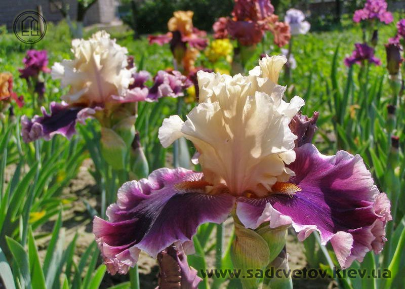 Кремово-бежеві ст. Рожево-фіолетові ф. з облямівкою кольору стандартів і вогненно оранжевими б., Супергофрований.