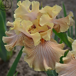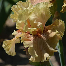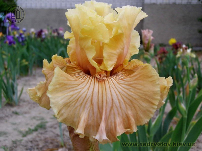 Велика, гофрована і розкішна кавово - медова квітка, ф. темніші з темними кавово коричневими прожилками, що розходяться по всьому тлу., бронзові б.