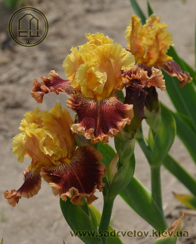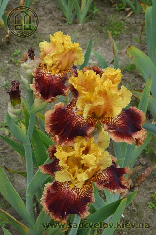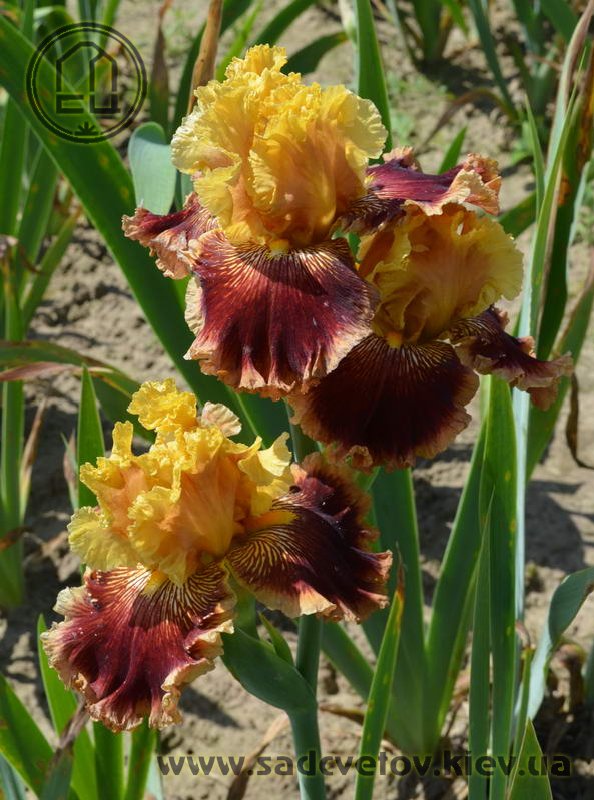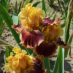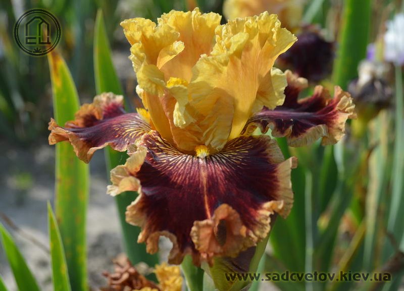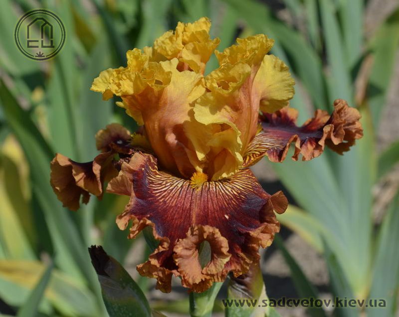 Добре гофрована квітка. Ст. - помірний оранжево-жовтий рум'янець середніх прожилок по світлій зеленувато-жовтої основі, ф. - темний червоний з люмінатою світлих білих і жовтих прожилок навколо бороди, 1/3 "облямівка помірного жовтувато-рожевого, б. - яскравий жовтий з яскравим помаранчевим.