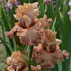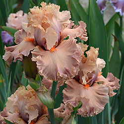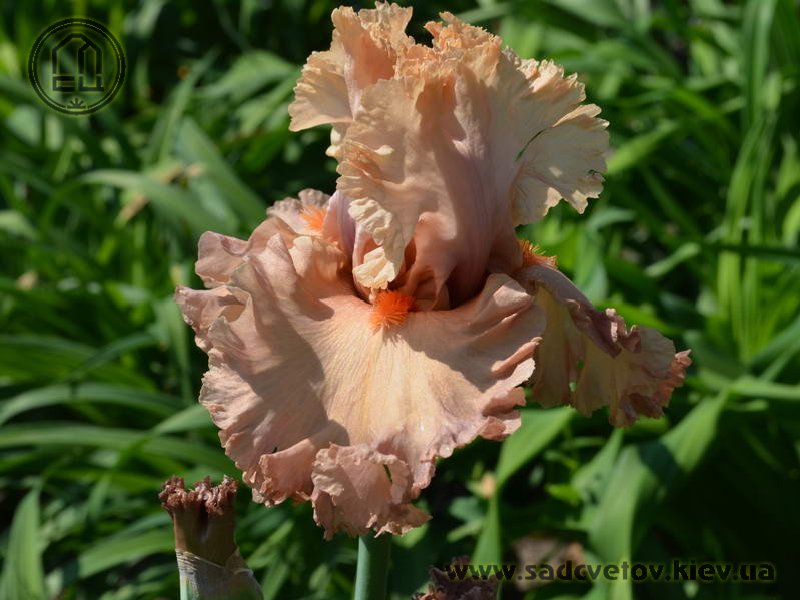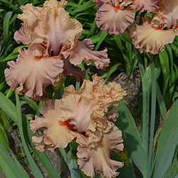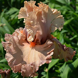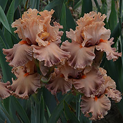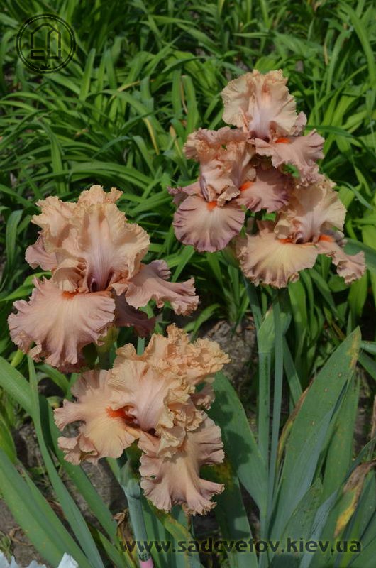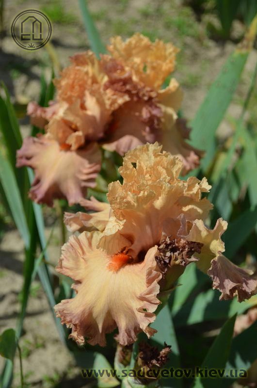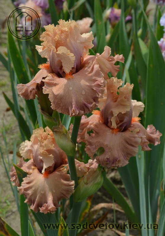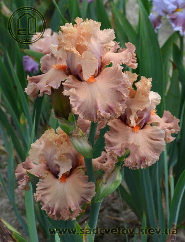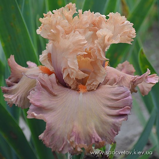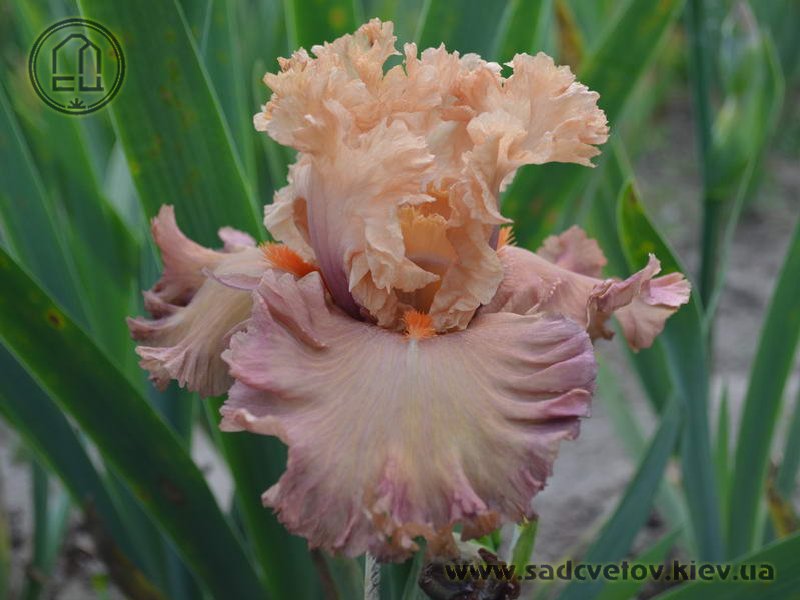 Прекрасно гофрований мереживний персиковий сильної конституції. Ст. - персикові з лавандовим рум'янцем в середніх жилках. Ф. - рожево-персикові більш насичені по краях і в плечах. Б. - яскраві лососєві.