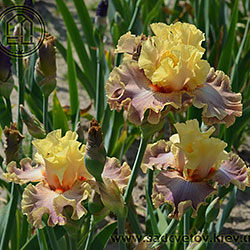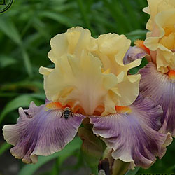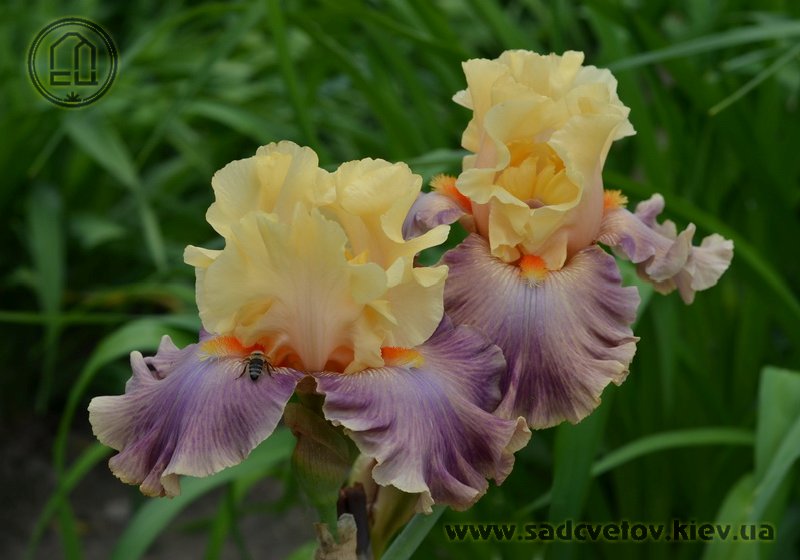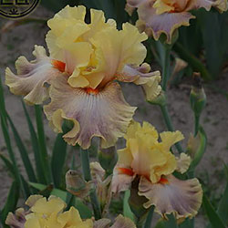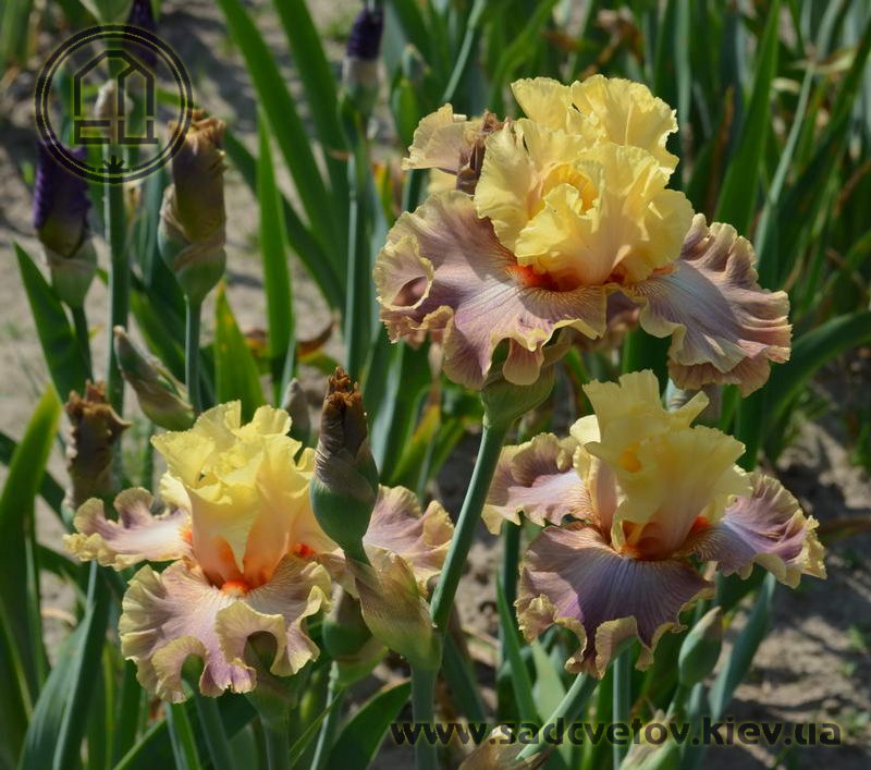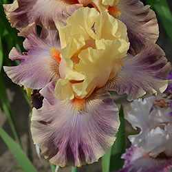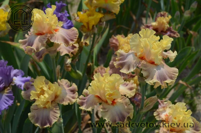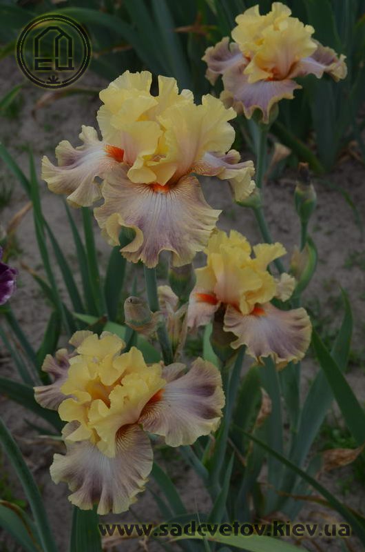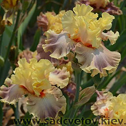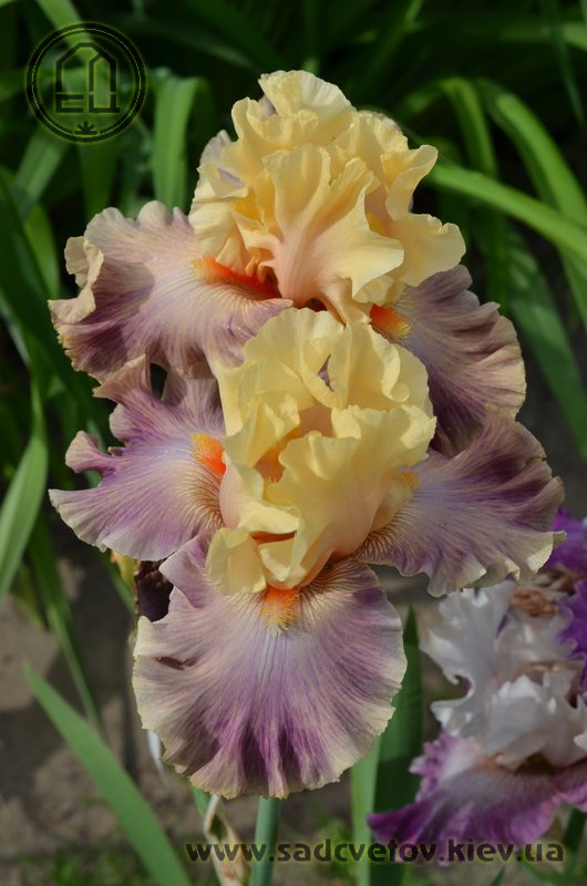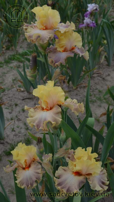 Прекрасне гофрування. Ст. - абрикосово-персикові з рожево-лавандовим рум'янцем в середніх жилках, по пастельних абрикосово-кавового фону фолл від борід не досягаючи 1/3" до краю лавандовий візерунок прожилок. Під мандариновими б. невеликий синій вогник.