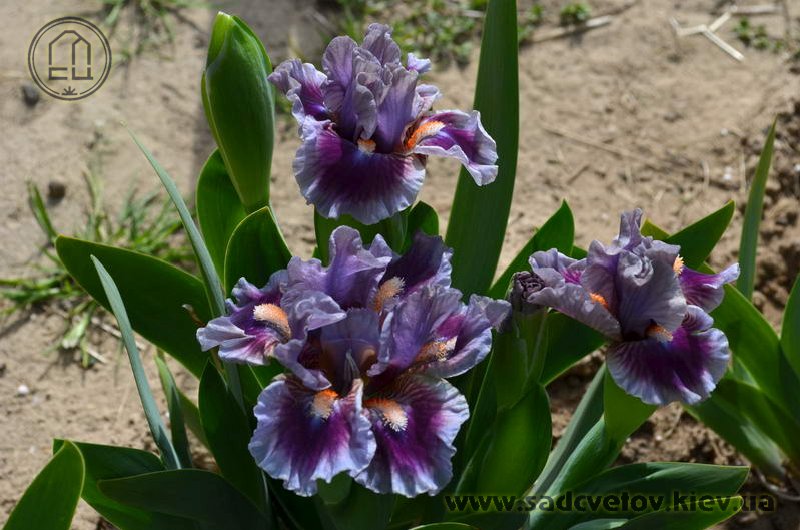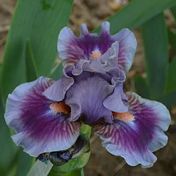 Гофрована квітка. Ст. - світлий фіолетовий з темним лавандовим рум'янцем в середніх жилках, серединка - лавандова як стандарти з гірчичними включеннями, ф. - чистий червонувато-пурпурний з 1/5" облямівкою кольору стандартів, з боків борідки світлий візерунок прожилок кольору стандартів, б. - з кінчиками чистого оранжевого по світло-блакитний основі.