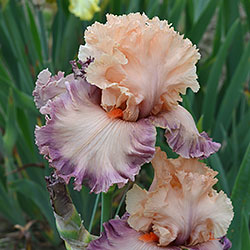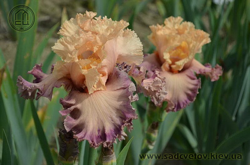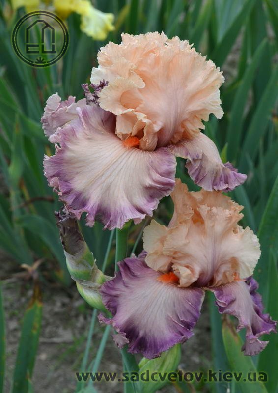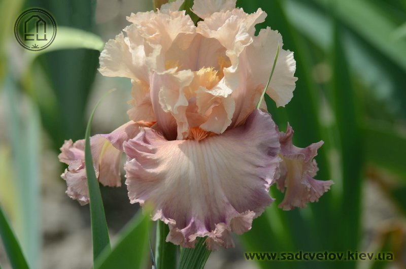 Унікальний мереживний супергофрований бежево абрикосовий, з рожево фіолетовою облямівкою на фоли і оранжевої борідкою.