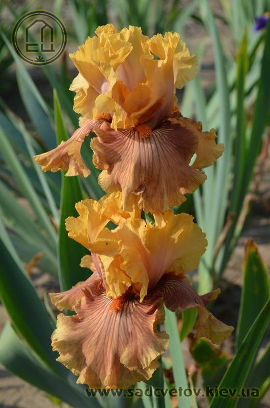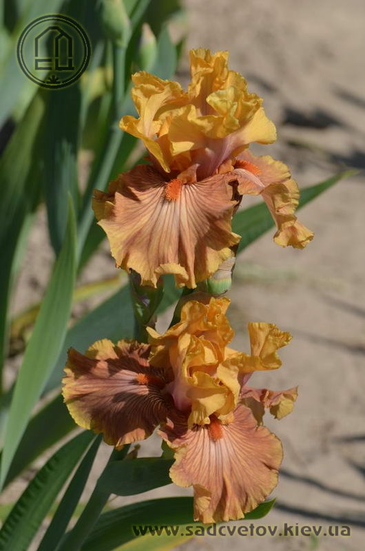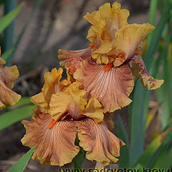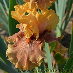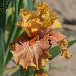 Яскрава гофрована абрикосова квітка. Ст. - світлі оранжево-жовті з лавандовим рум'янцем, ф. - бліді оранжево-жовті в основі у борідки з віялом помірних оранжевих прожилок від борідки по всій поверхні фол за винятком розмитої облямівки кольору стандартів, б. - чистий оранжевий.