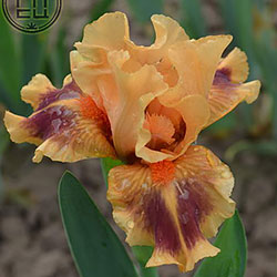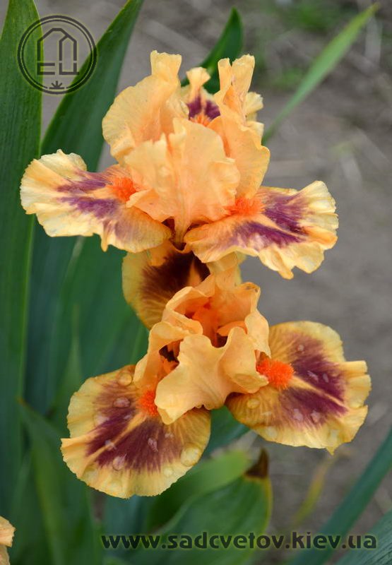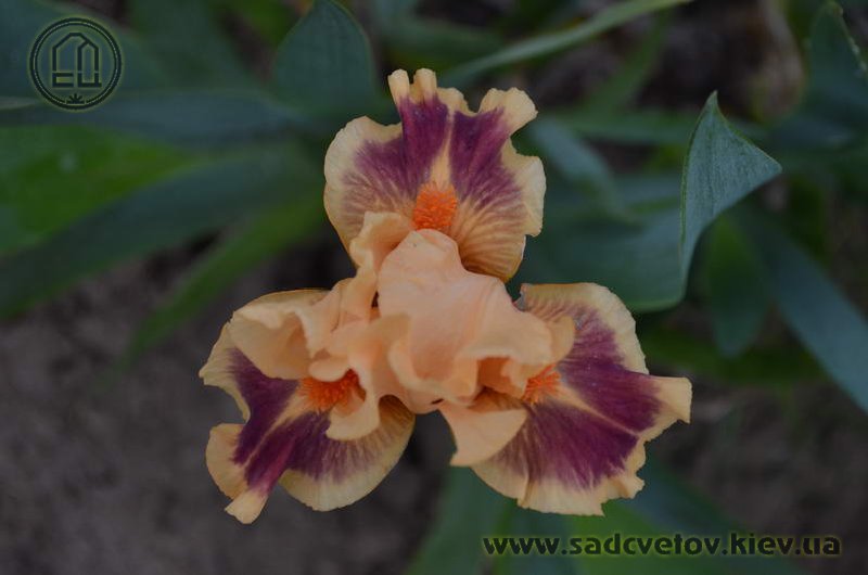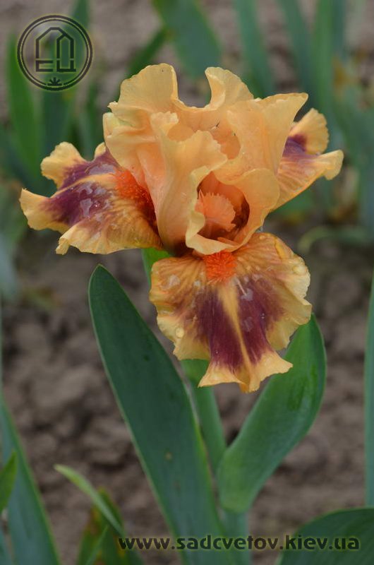 Гофрована абрикосова з оранжевими прожилками квітка, на фолах розсічена посередині малинова пляма яка створює 1/5" облямівку по краю, б. - лососєво-оранжева.