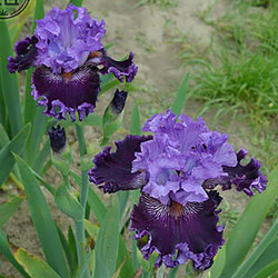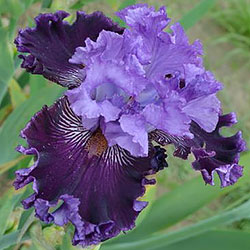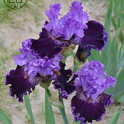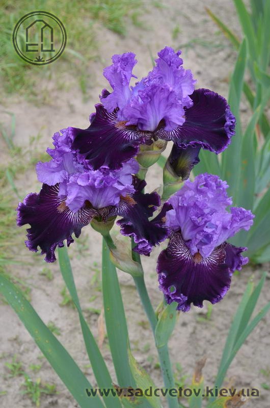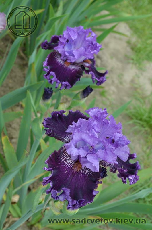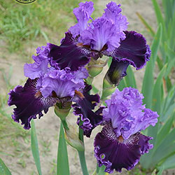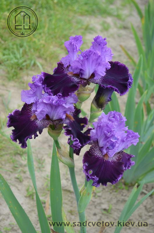 Добре гофрована квітка. Ст. - фіолетові з висвітленням в середині. Гілки маточки такі як стандарти з синім відтінком. Ф. - темні фіолетово-бордові з тонкою каймою кольору стандартів та активним білим візерунком з боків від бороди. Б. - приглушена помаранчево-коричнева по білій основі.