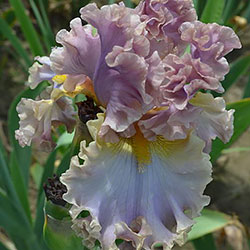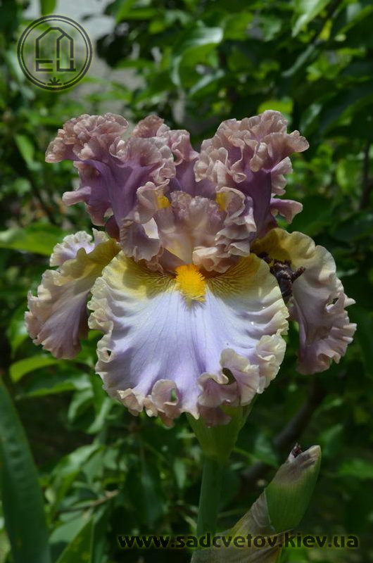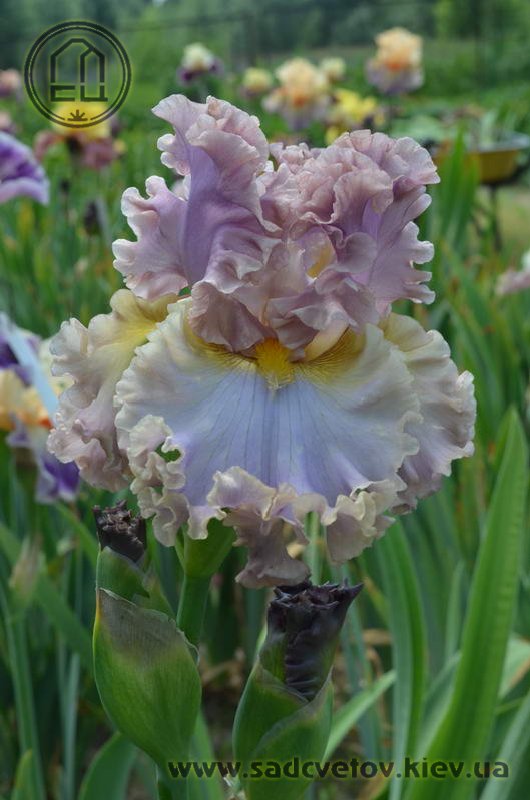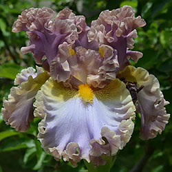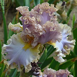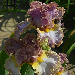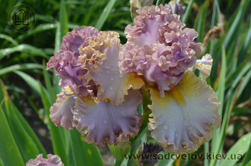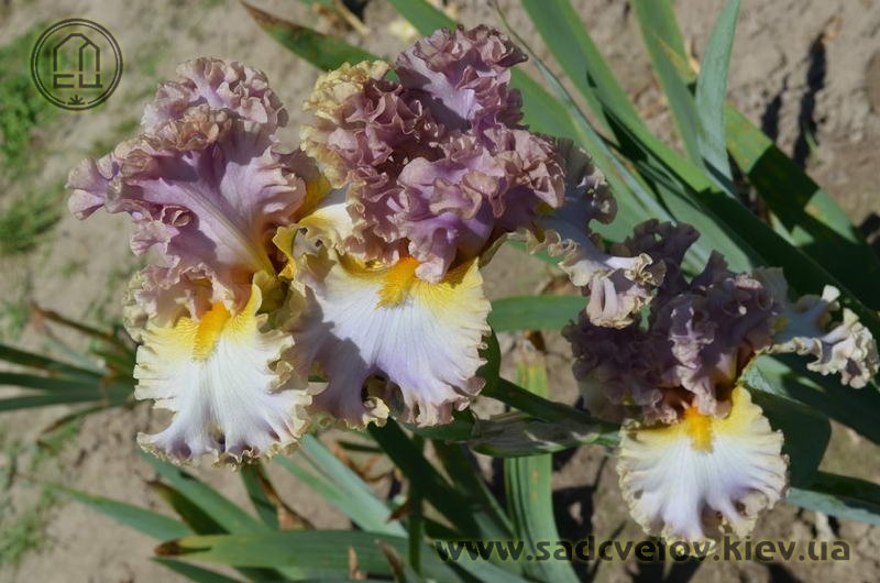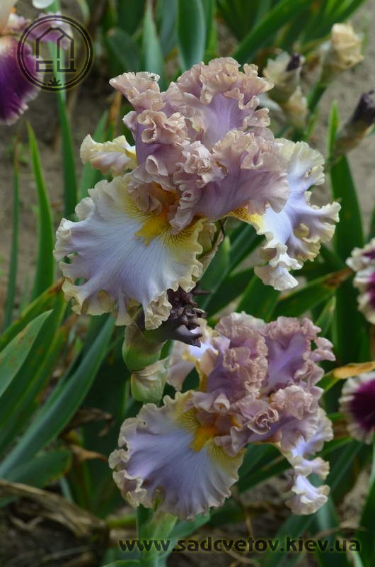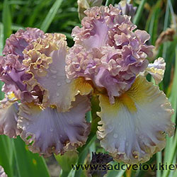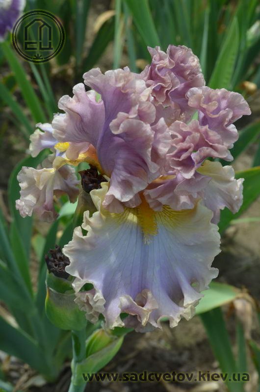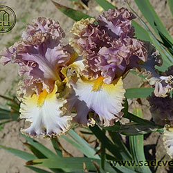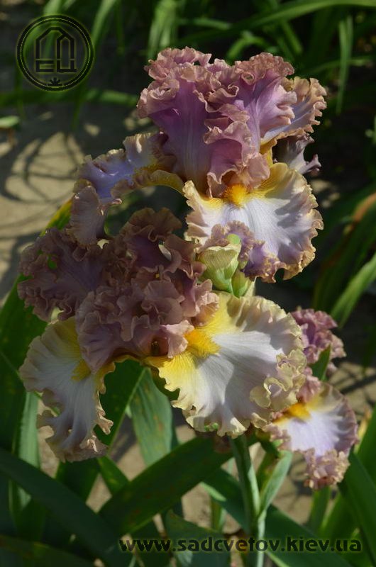 Дуже гофрована реверсивна квітка. Ст. - лавандові з бєжевими кучерями по краях. Гілки маточки - такі як стандарти з золотисто-жовтими включеннями. Ф. - світло-блакитні з гофруванням кольором блідого бежевого та золотистими плечима. Б. - жовті з гірчичними кінчиками.