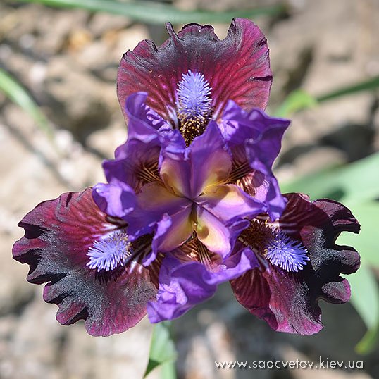 Темно-ліловий з вираженим радіальним малюнком темно-бордових прожилок навколо ультрамаринових б.