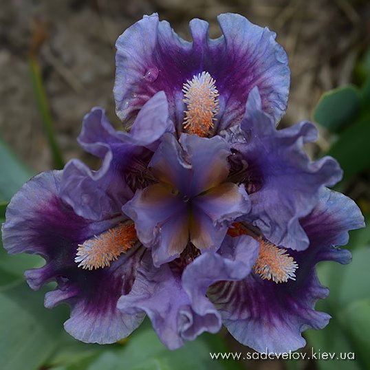 Гофрована квітка. Яскраві фіолетові ст., серединка лавандова з темно-синіми рисочками на кінчиках маточки, ф. - яскравий пурпурний з темним насиченням під б. та лавандовою облямівкою, б. - світло-блакитні з мандариновою горловиною.