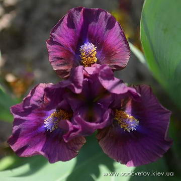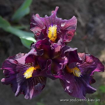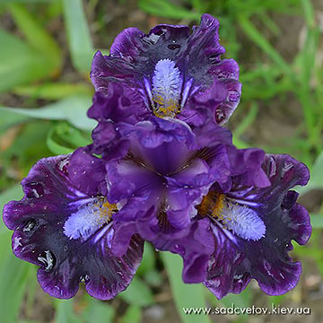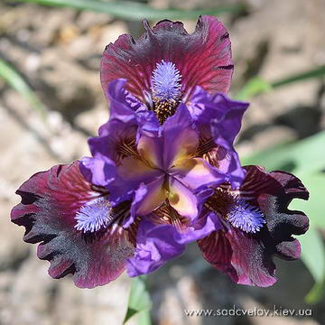 Ст. - темний пурпурний, серединка - світлий пурпурний з яскравим фіолетовим в осях, ф. - темний пурпурний і більш насичений темний під борідкою, візерунок білих і жовтих прожилок з боків від яскравої жовтої з білою основою б.