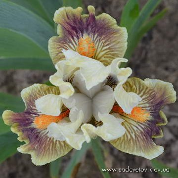 Ст. - сніжно-білі з золотистими прожилками, ф. - золотисті з темною фіолетовою плямою під борідкою, білим візерунком з боків і висветленной облямівкою по краю, б. - оранжеві з білою основою